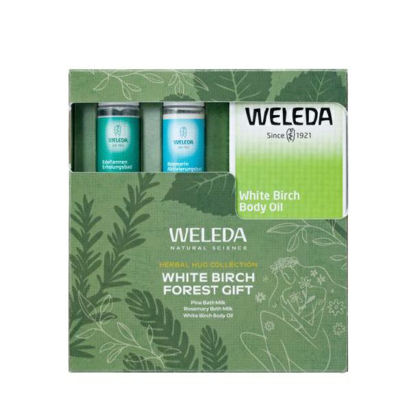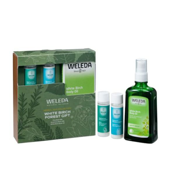 肌を引き締めてなめらかに整えるホワイトバーチボディオイルにお値段そのまま、森林浴気分を楽しめる2種のバスミルクをセットに。