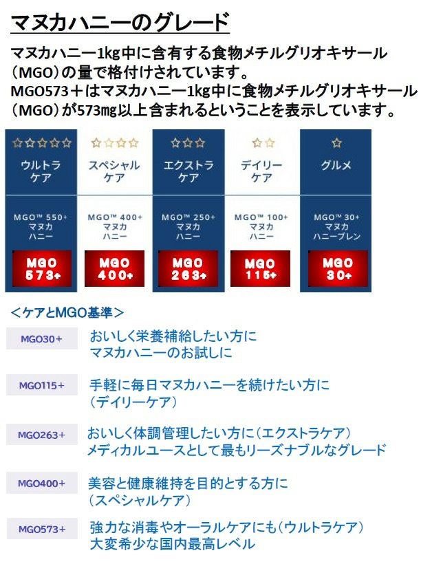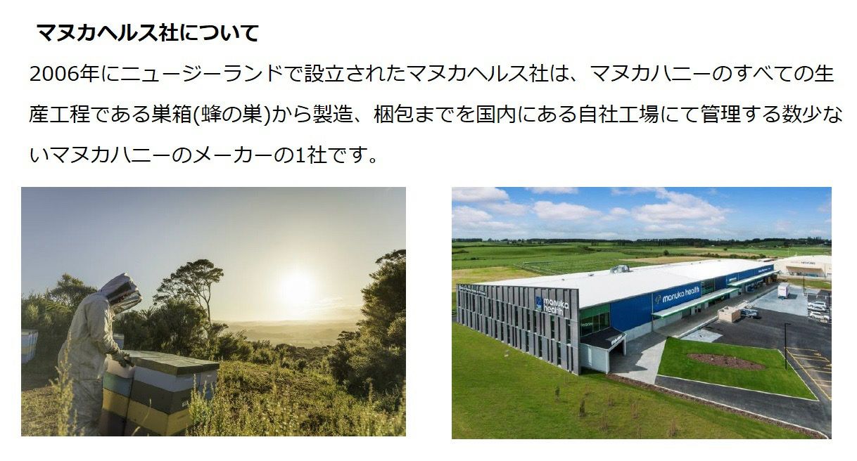 他の画像を見る ニュージランドに自生する木「マヌカ」の花から採集したはちみつ マヌカヘルス マヌカハニーMGO263+/UMF10+ 500g カートに入れる お気に入りに登録する (0) 当店特別価格 ¥ 9,720 税込